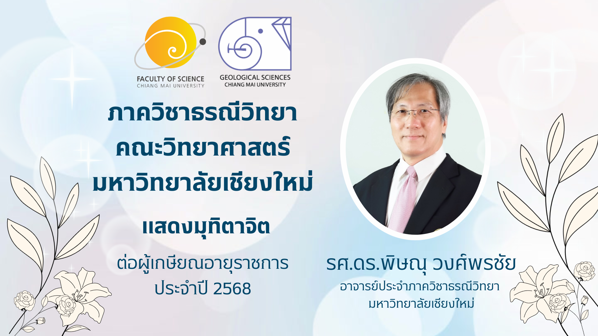 The Department of Geological Sciences, Faculty of Science, Chiang Mai University, is Thailand's leading educational institution in earth sciences. The Department is dedicated to generating knowledge in geological sciences and producing highly knowledgeable students in geosciences and gemology to serve society and the nation. In the year 2024, marking the 60th anniversary of its establishment, the Department of Geological Sciences aims to be a high-quality educational and research institute in Geosciences and Gemology at an international standard.